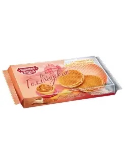 Вафли Яшкино Голландские с вареной сгущенкой 290 г - это оригинальные сладкие сэндвичи, которые представляют собой две тонкие круглые вафли, скрепленные мягкой начинкой из вареного сгущенного молока. Они легко разламываются, но не хрустят в отличие от традиционных. Голландские вафли готовятся по уникальному рецепту в специальных вафельницах, затем промазываются сиропом или другими сладкими начинками, за счет чего пропитываются и приобретают свой нежный вкус и особую структуру.