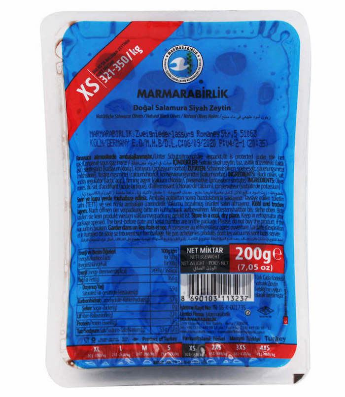 Маслины "Marmarabirlik" 0,2 кг XS-321-350 вакуум 1/24 (синяя уп.)
