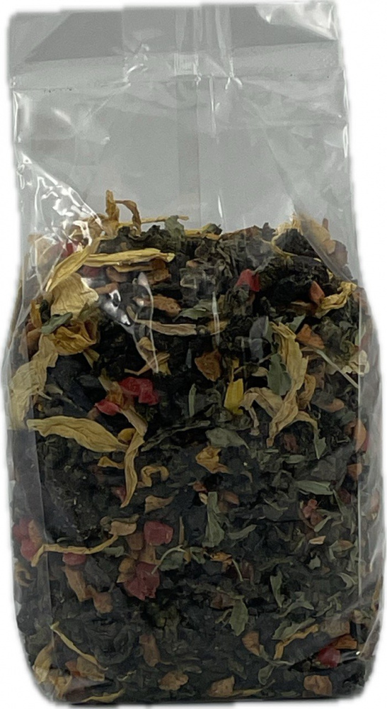 Состав: натуральный китайский зеленый чай Улун, цукаты ананаса, клюква валеная, лепестки подсолнуха, мята сушеная, яблоко сушеной.