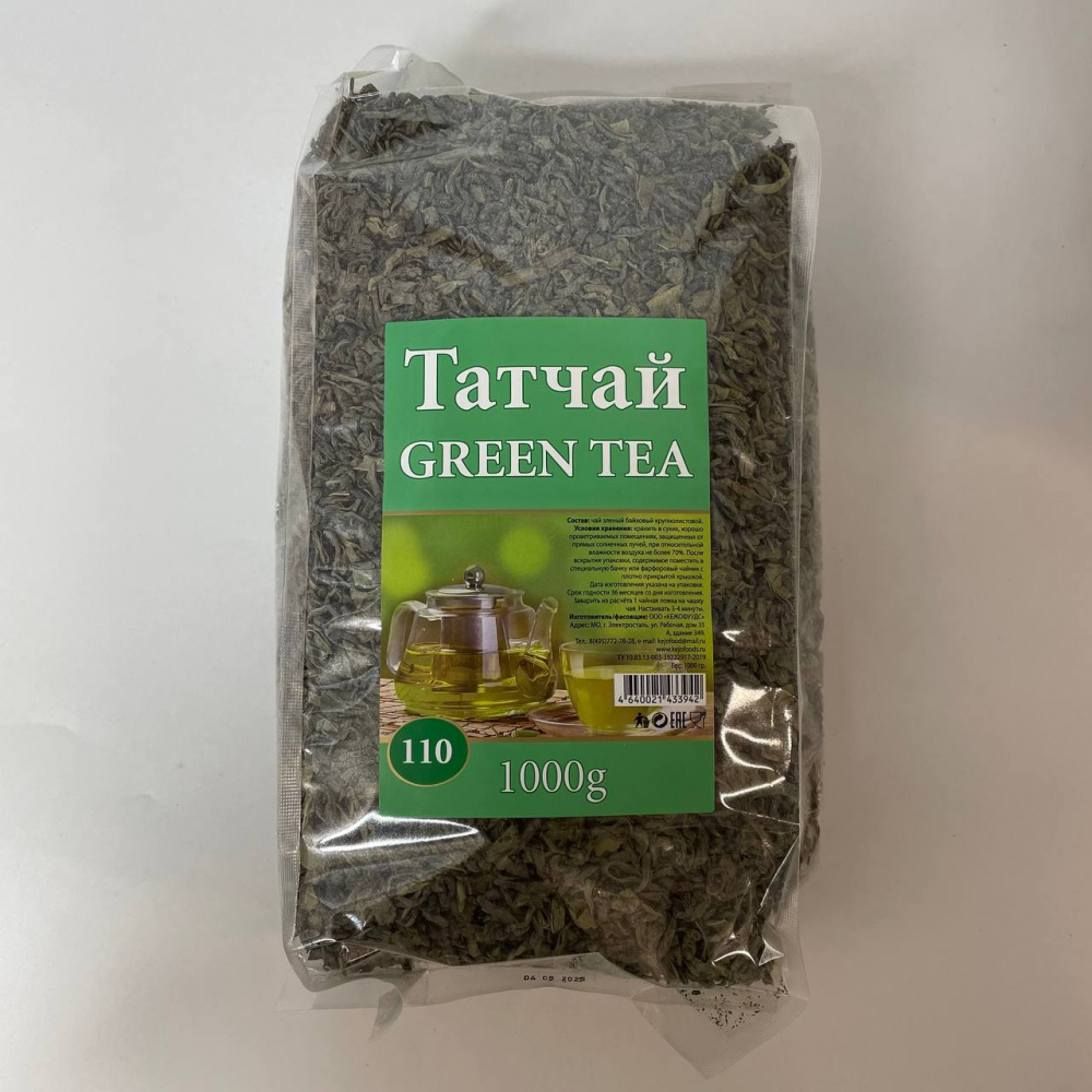 ТАТЧАЙ №110 Ko'k choyi ЗЕЛЕНЫЙ крупнолистовой 1000гр м/у (8шт./кор) НФ-00007591