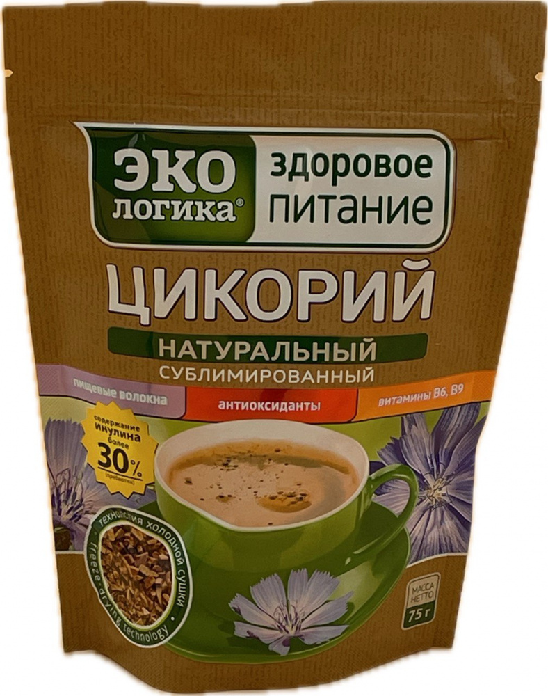 Цикорий натуральный сублимированный Экологика Здоровое питание представляет собой натуральный и полезный продукт, исполненный в виде быстрорастворимых гранул. Он произведен из высушенных и тщательно обжаренных корневищ Цикория обыкновенного и характеризуется ярко выраженным кофейным вкусом со слегка горьковатыми нотками, которые деликатно проступают в послевкусии. Этот напиток является идеальной альтернативой кофе - он не содержит небезопасный для здоровья кофеин, но при этом эффективно бодрит и заряжает энергией на весь день. При регулярном употреблении цикорий оказывает на организм положительное воздействие: понижает уровень сахара в крови, улучшает обмен веществ и способствует нормализации работы желудочно-кишечного тракта. Он оптимально подходит тем, кто следит за фигурой, а также диабетикам и людям, страдающим заболеваниями органов пищеварения. Гранулы легко растворяются в воде, а для получения вкусного напитка достаточно всего 1-2 чайных ложек цикория.
