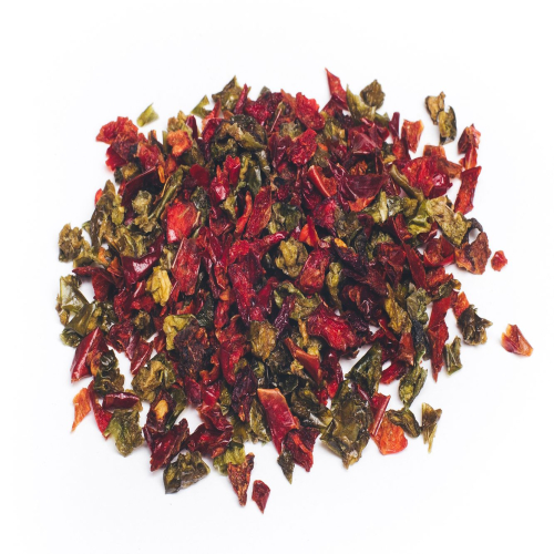 Паприка Светофор - смесь 3х видов сладкой паприки высшего качества красного, желтого и зеленого цвета в форме хлопьев. Такая комбинация обладает слегка острым пряным вкусом и ароматом свежего овоща. Смесь паприки незаменима для первых блюд, маринадов, соусов и мяса. Благодаря правильной сушке пряность сохраняет витамины и питательные вещества.