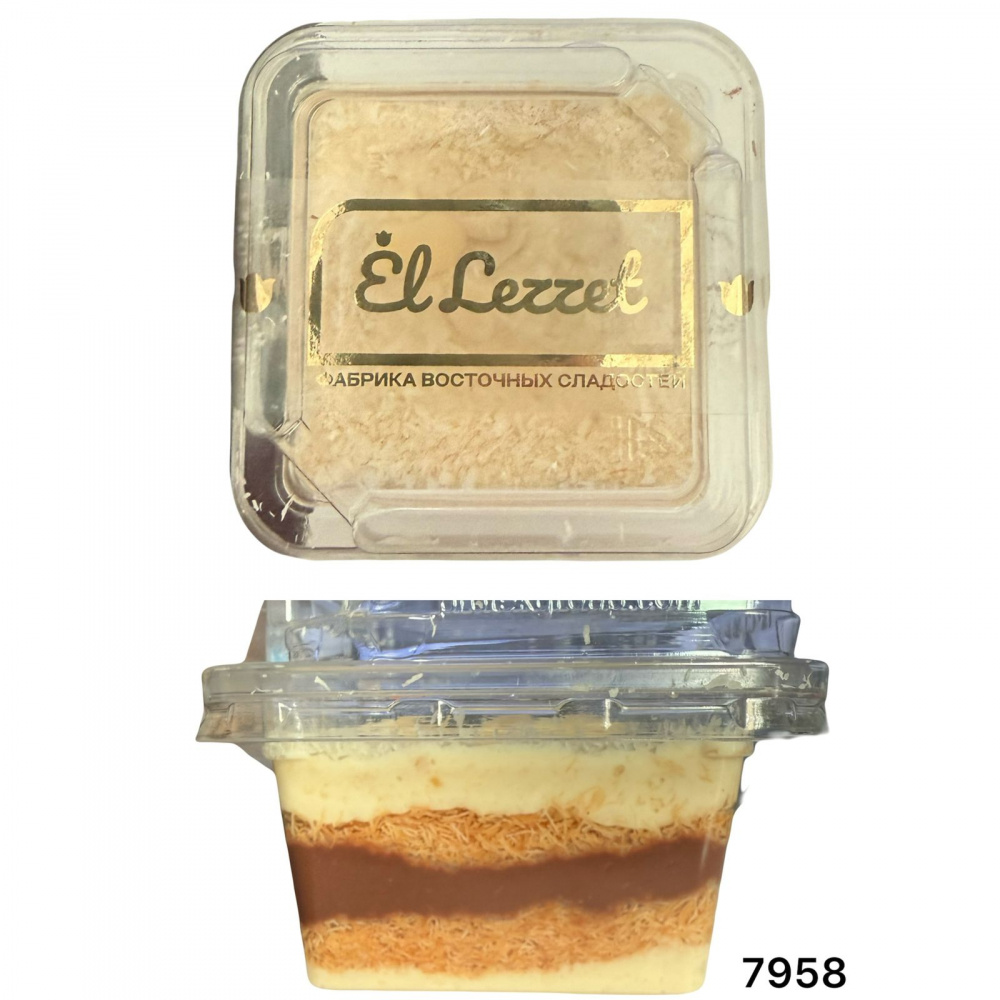 с лепестакми миндаля , слой шоколада и лесного ореха ,слой кадайифа и слой нежного крема .