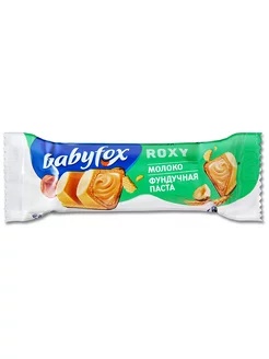 Батончик вафельный BabyFox «Roxy» молоко и фундучная паста, 18.2 г. Легкая хрустящая вафелька, наполненная нежной, моментально тающей во рту молочно-ореховой начинкой на основе фундучной пасты. Донышко батончика покрыто молочным шоколадом из отборных какао-бобов.Вафельный батончик Babyfox Roxy – уникальное сочетание вкусов и текстур.