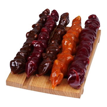 Чурчхела - это традиционная армянская сладость, изготовляемая из орехов, в основном грецких, и фруктового сока. Ее состав включает грецкий орех, гранатовый сок, пшеничную и кукурузную муку первого сорта, сахарный песок, корицу, мускатный орех, ванилин, гвоздику и лимонную кислоту. Наша чурчхела характеризуется нежной фруктовой сладостью и пряным ароматом. Орехи свежие, а фруктовая оболочка достаточно мягкая, не резиновая. Ее нежный вкус и мягкая оболочка не прилипают к зубам. Она является замечательной альтернативой любой сладости, практически без сахара, и представляет собой полезную постную сладость. Это настоящий суперфуд - полезный.