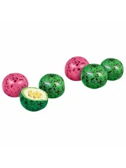 Драже красного цвета в крапинку со вкусом клубники и драже зеленого цвета со вкусом лайма. Взрывная карамель приятно "стреляет" во рту.