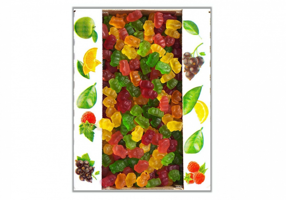 Фруктовый жевательный мармелад Веселые мишки с натуральным соком! Желейные, фигурные, в форме забавных мишек и каждый цвет имеет свой вкус - апельсин, малина, черная смородина, банан, яблоко, лимон! Жевательные Мишки от Азовской фабрики отличаются мягкостью и особой нежностью. Всегда свежие, сочные и ароматные, хорошо упаковываются перед отправкой. Цветные мармеладки отлично подойдут как подарок деткам на торжество, подарят радость вкуса,