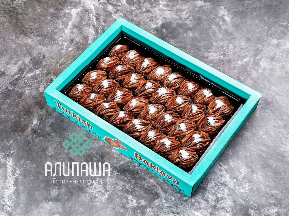 Пахлава "Мидия"шоколадная с нач.из дробл. грецкого ореха и нежным каймаком (32 шт. 2000 гр)