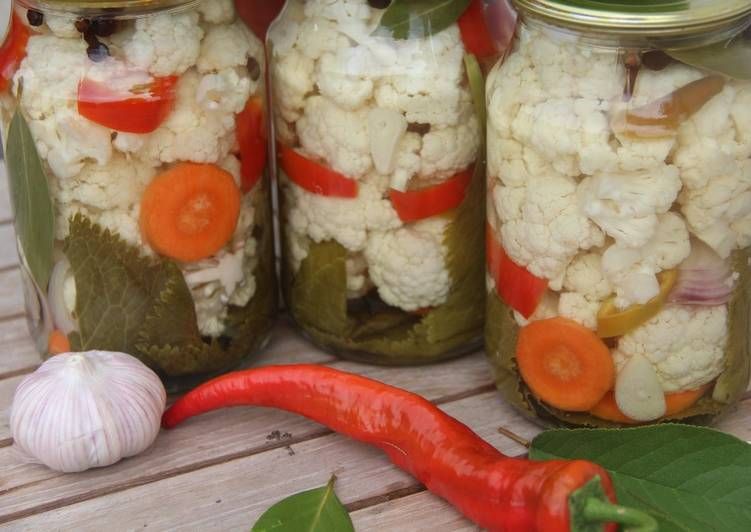 Цветная капуста, вода, сахар, соль, зелень укропа, уксусная кислота, чеснок, специи.